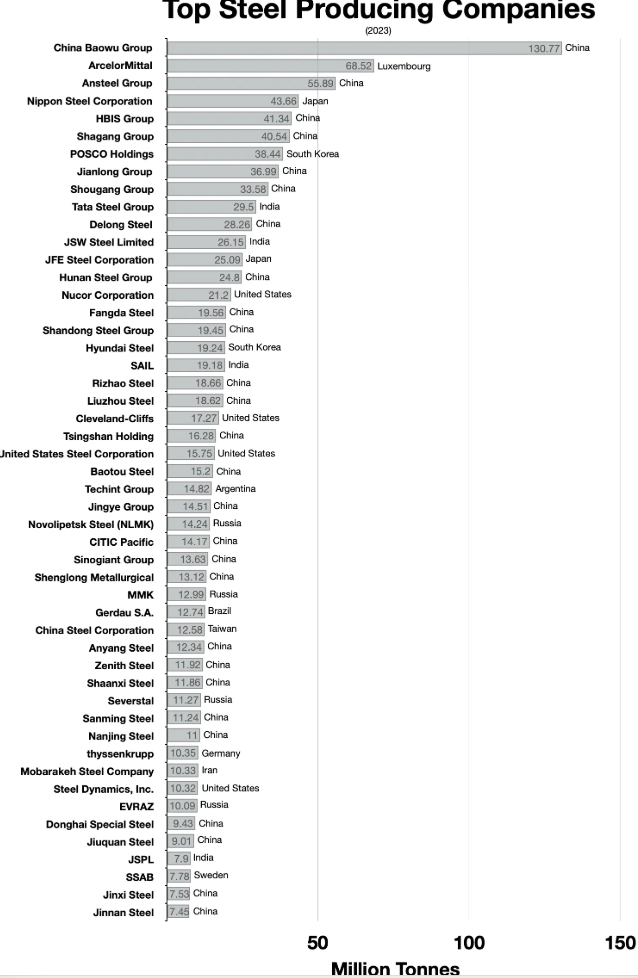 Manufacturing is coming alive in Europe. Take Arcelor Mittal the worlds second largest producer of steel. And its based in Luxembourg one of Europe’s smallest countries. Over the last fifty years Europe kept alive essential industries, unlike the US. I visited Toulouse a few years ago to see the Airbus factory. It’s now the largest supplier of aircraft in the world while Boeing should have gone bust if it did not have US military contracts. It will take more than tariff’s to stimulate the backward and inefficient US industrial complex. You would be better investing in India, Malaysia and Vietnam. I put the list of steel companies at the end of the e-mail.