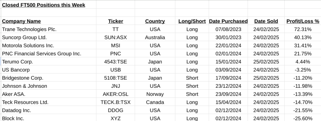 FT500 Closed Trades, Cumulative Gain this week=-45.75%