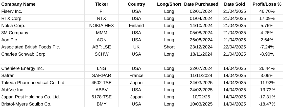 On the share front there was a net gain of 28.38% over the last two weeks. The best trade was Fiserve Inc.(FI +46.7%) and the worst being Bristol-Myers Squibb Co.(BMY -18.47%).