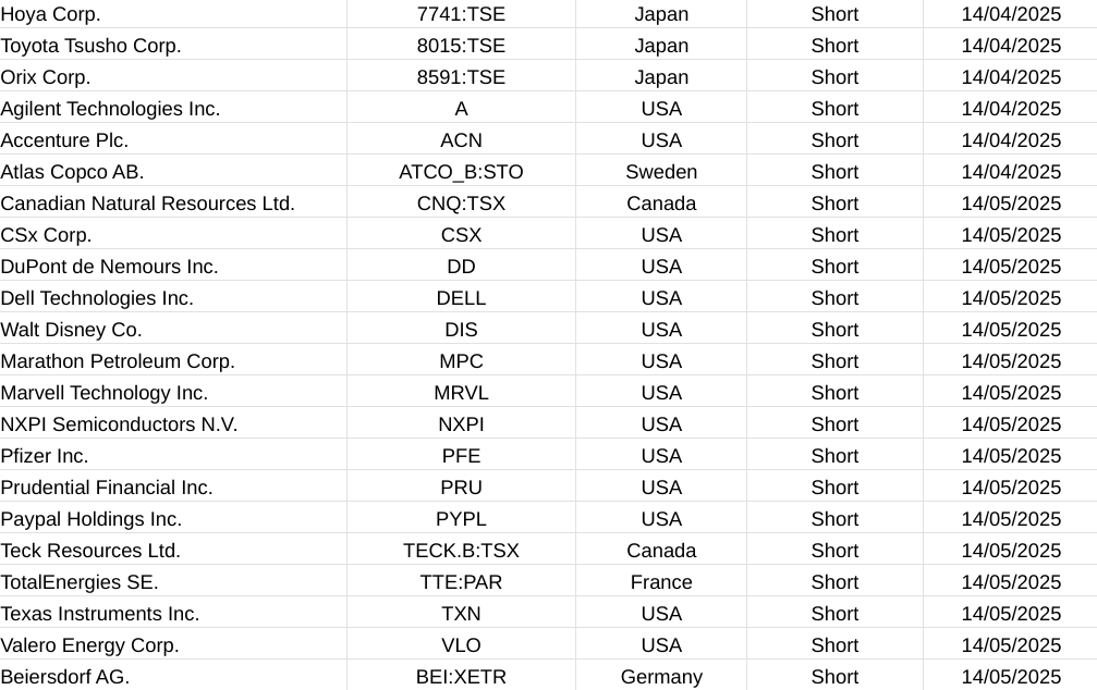The list of stocks analysed are from the MSCI Large Cap list as of 01/01/2025.