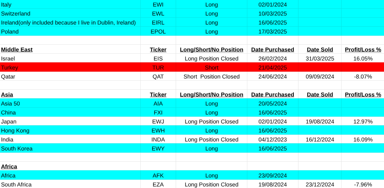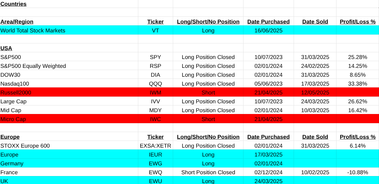 Hi all, I was as we say in Dublin ‘Malavogued’ over the last two weeks, translated it means punished or trounced severely. Well I’m licking my wounds. I was short a lot of positions after Trumps so called ‘Liberation Day’ announcement on April 5th. The signals appeared and I took them. There are disadvantages of trend following but overall performance in good.