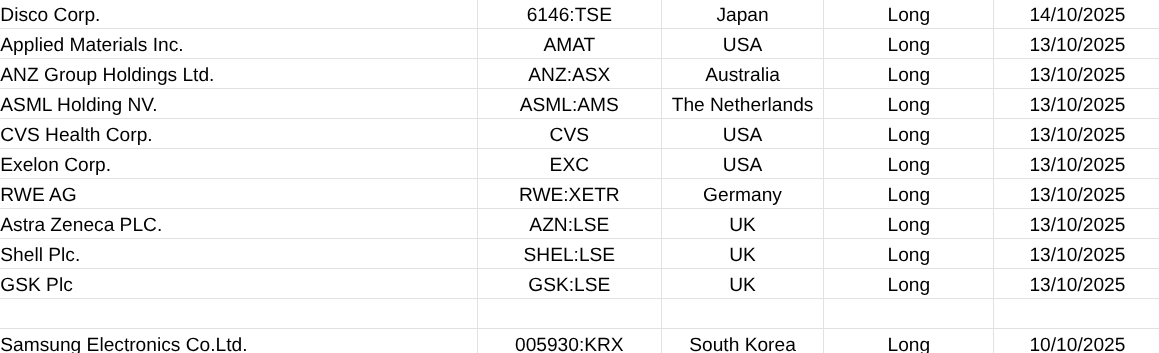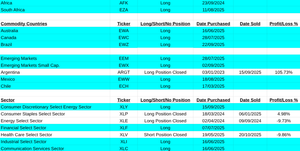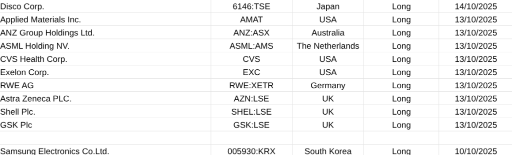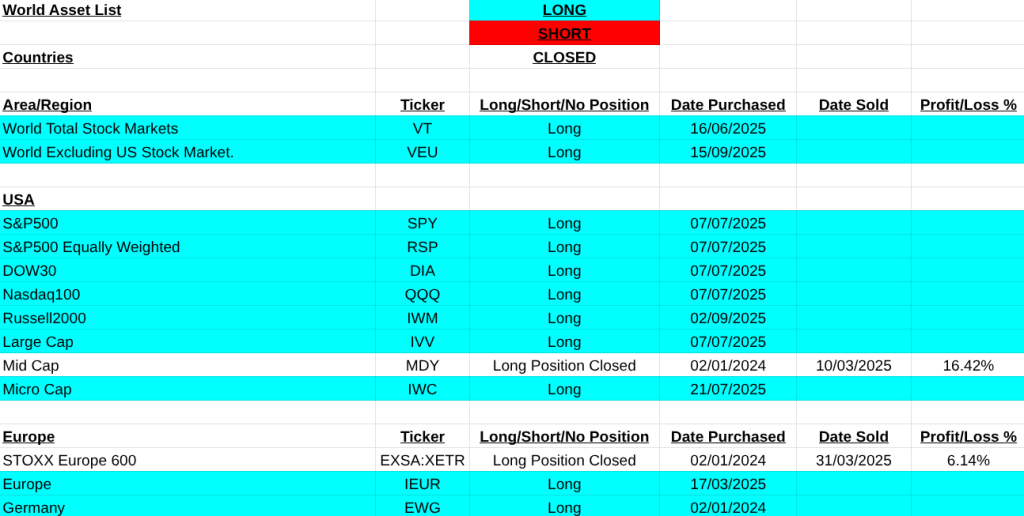 One thought on “Weekly MSCI World Large Cap Stocks, Sectors, Industries, Indices, Commodities, Bonds, Currencies and Themes Signal List…27/10/2025