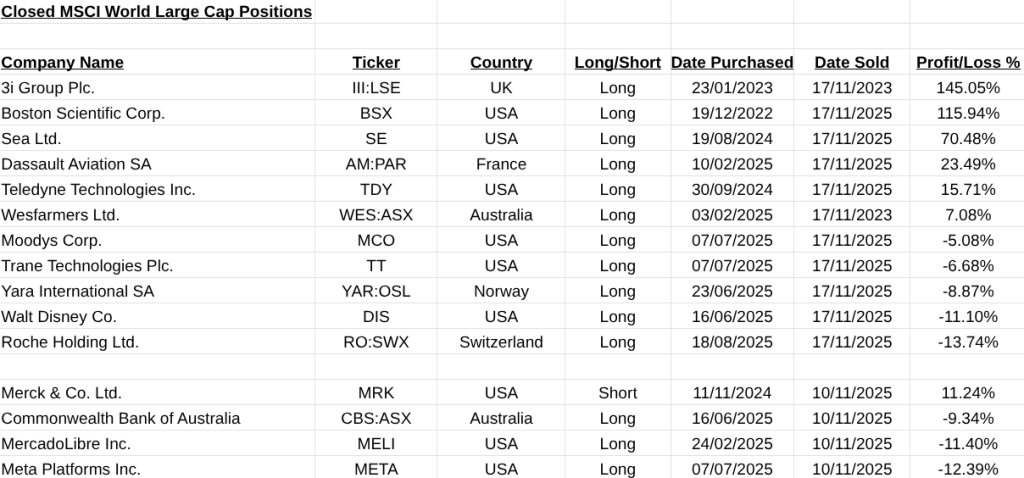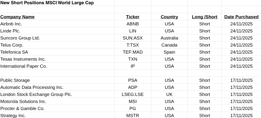 The list of stocks analysed are from the MSCI Large Cap list as of 01/01/2025.