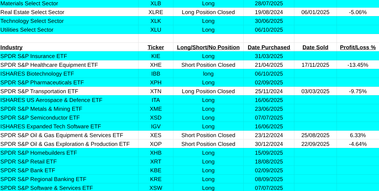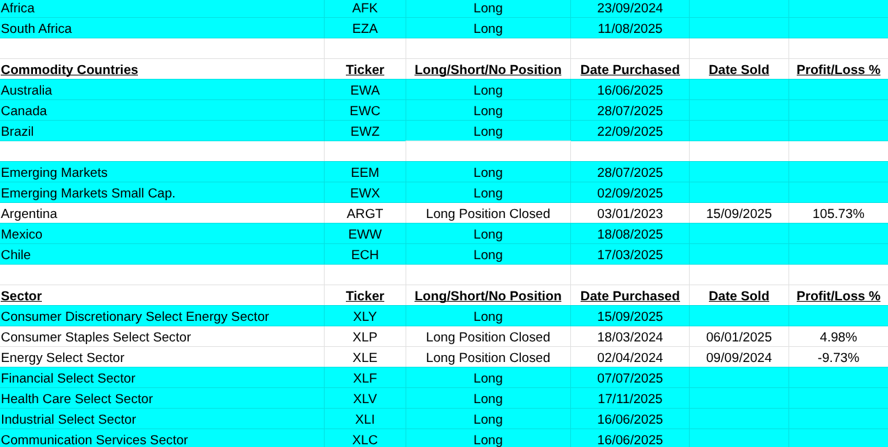 Closed positions were on Germany(EWG, +36.04%), Bitcoin(IBIT, +5.72%) and Health Care Equipment(XHE, -13.45%).