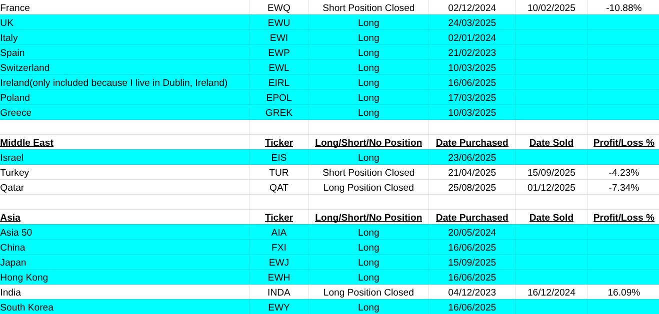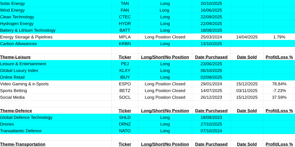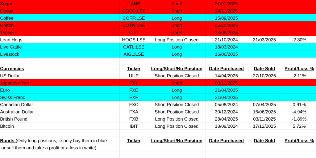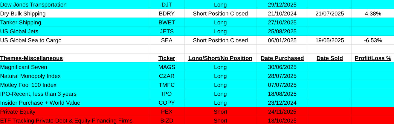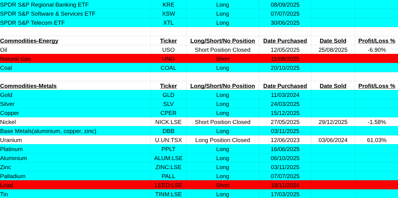 My list of closed trades, new buys and shorts are below. I wish everyone a rewarding and great 2026, Pearse.