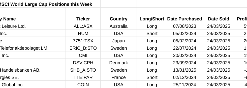 24/03/2025, Weekly MSCI World Large Cap Stocks, Sectors, Industries, Indices, Commodities, Bonds, Currencies and Themes Signal List…